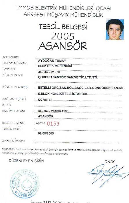 ASANSÖR TESCİL BELGESİ ELEKTRİK